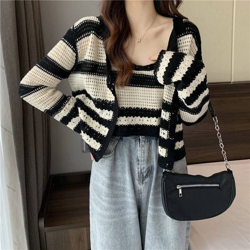 涼しげな夏を演出するサマーニットタンク&カーディガンが新登場!繊細な編み目で涼しさを保ちつつ、薄手の生地が通気性を保つので、暑い季節でも快適に着用できます。ボタンを留めるとセーター感覚で、開けると涼やかなタンクトップとしても活躍。コーディネート次第で様々なスタイルを楽しめます。
