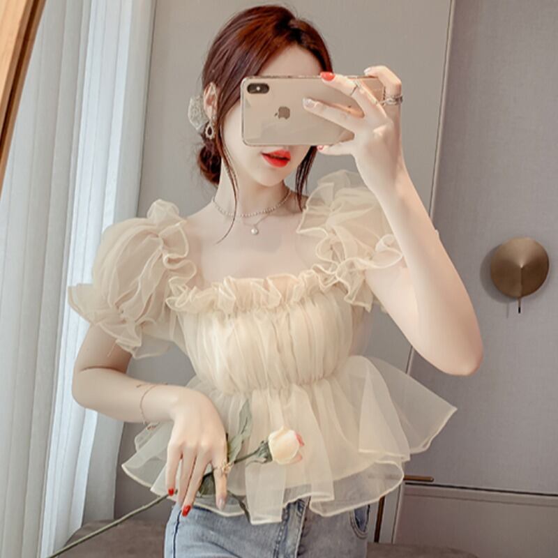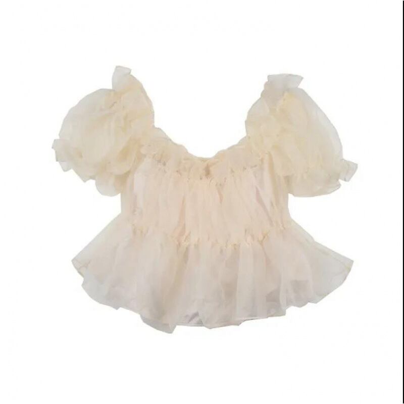このチュールミニ袖トップスは、デートや友人との食事会など様々なシーンに活躍します。夢見るようなフェミニンな雰囲気で、周囲の視線を引きつけます。自信を持って輝く女性像を演出してくれる一枚です。この季節、あなたもぜひ輝きの一部になってください。